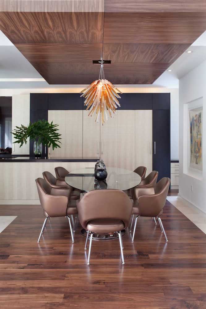 Imagem 10 – Um luxo essa mesa oval com tampo de vidro fumê acompanhada pelas cadeiras de couro.