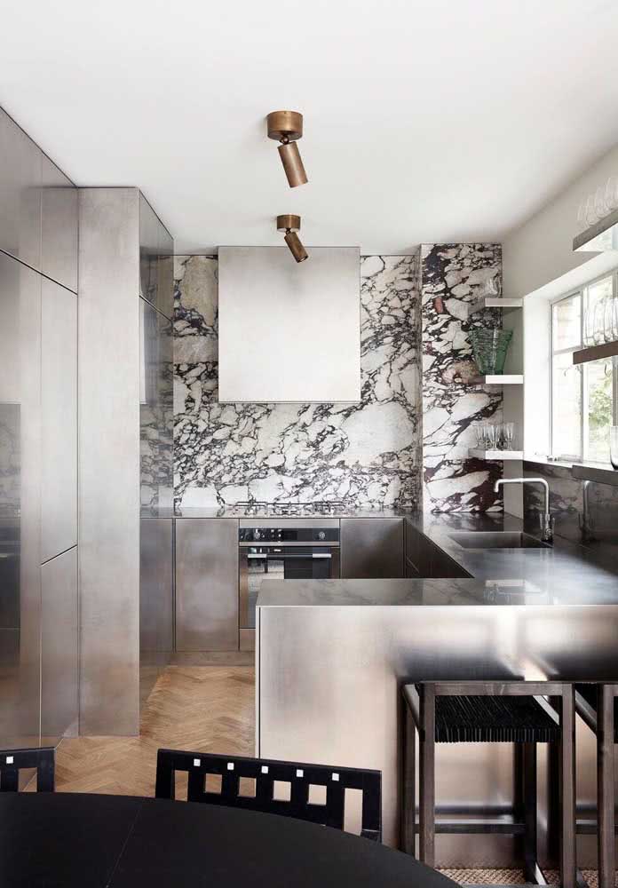 Imagem 13 – Cozinha de inox seguindo a estética minimalista.