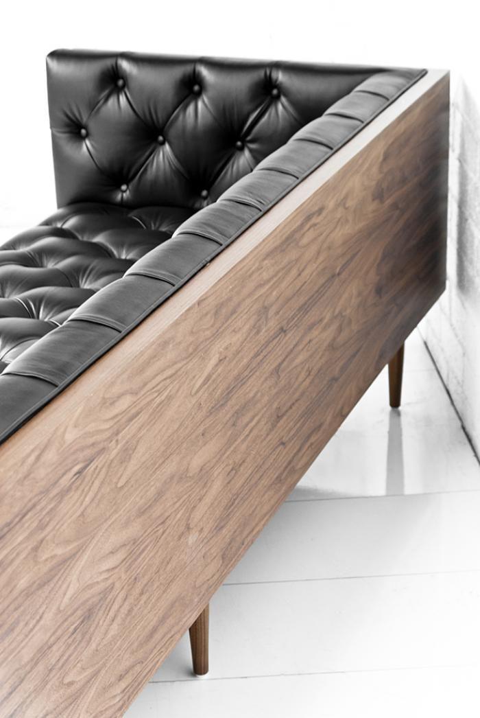 Imagem 50 – Sofá com estofado escuro e base leve de madeira que se fixa na lateral da peça.