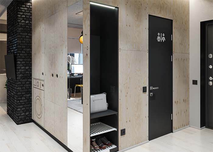 Imagem 15 – O móvel planejado no hall de entrada permite que roupas e sapatos sejam organizados assim que o morador chega em casa.