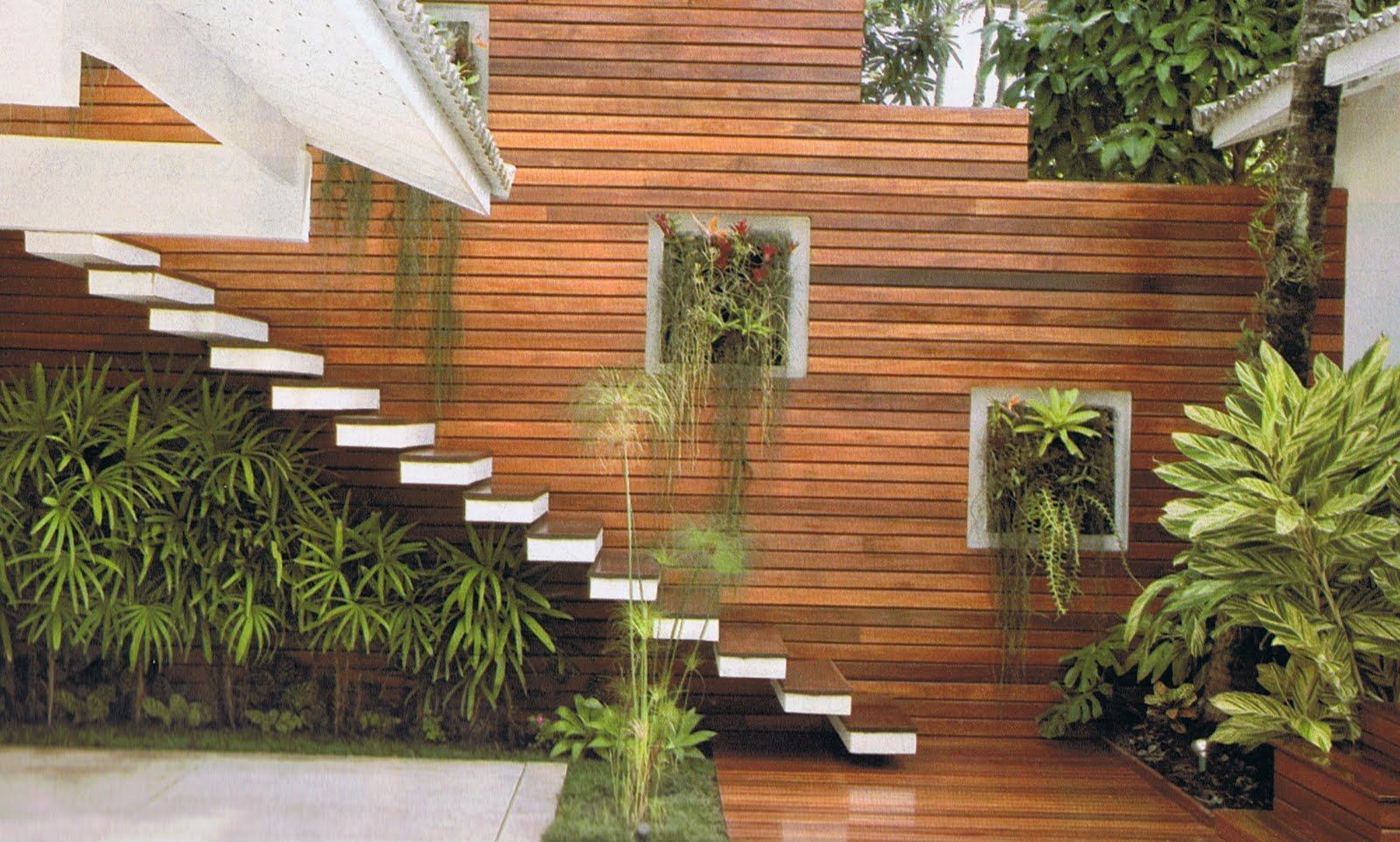 Imagem 53 – Além do painel amadeirado o muro ganhou nichos para algumas plantas