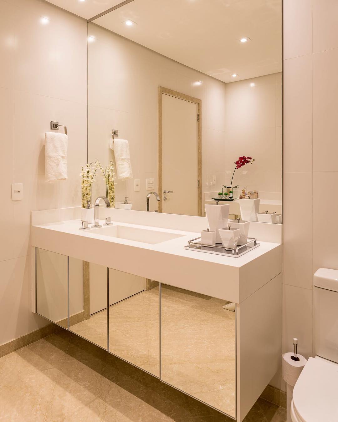 Imagem 19 – Combine a bancada em Nanoglass com armários espelhados.