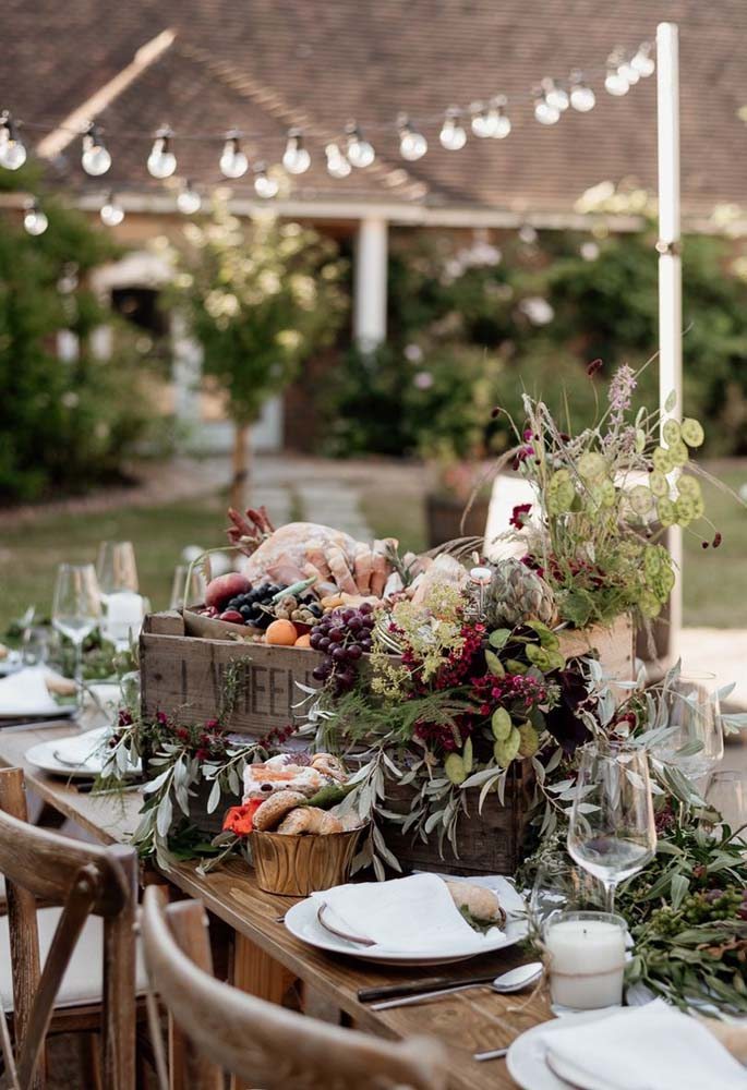 Imagem 23 – Frutas e legumes integram a decoração de noivado rústico.