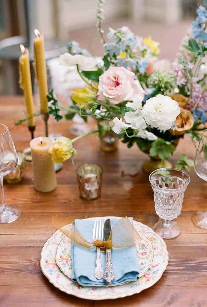 Imagem 44 – Um toque de azul para a paleta de cores do noivado rústico.