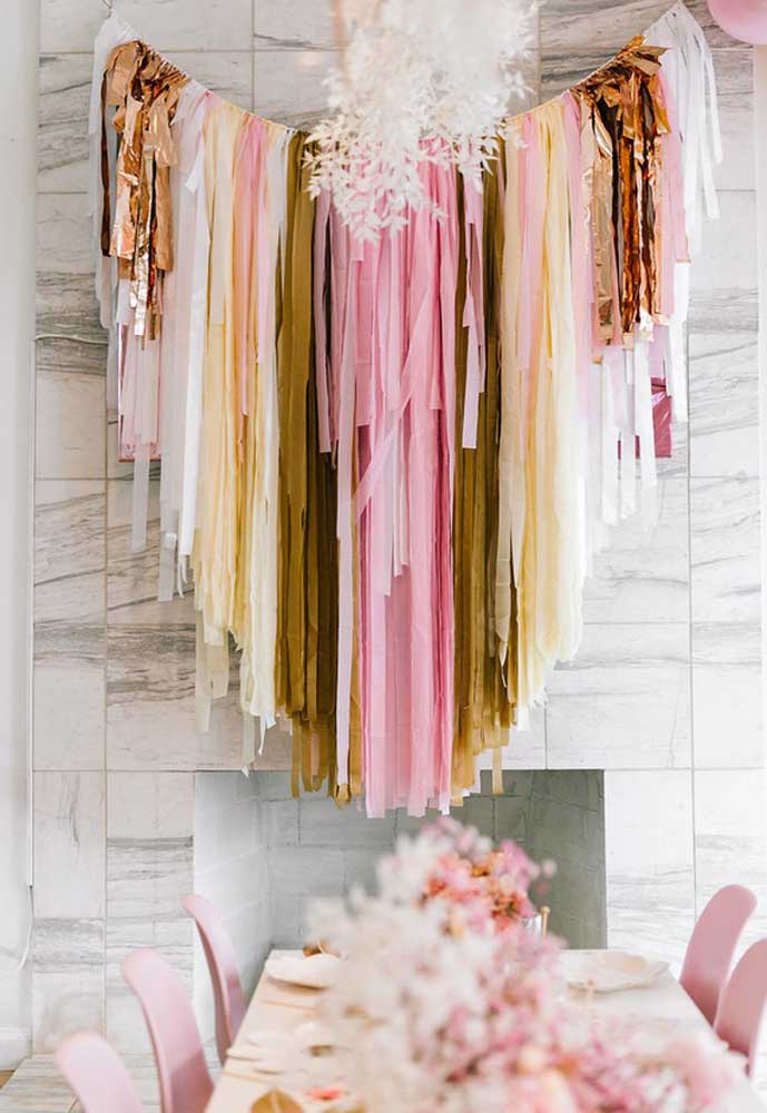 Imagem 45 – E que tal usar tiras de papel crepom na decoração do painel para o dia das mães?