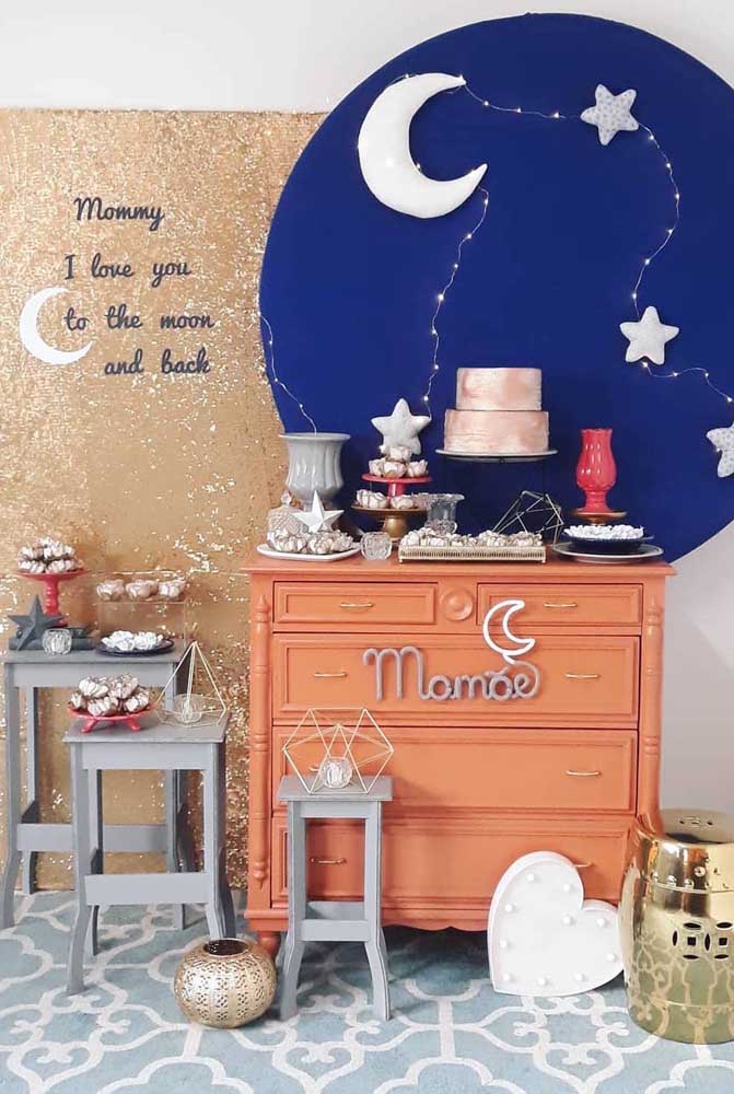 Imagem 57 – Painel de dia das mães inspirado no céu iluminado pela lua e pelas estrelas.