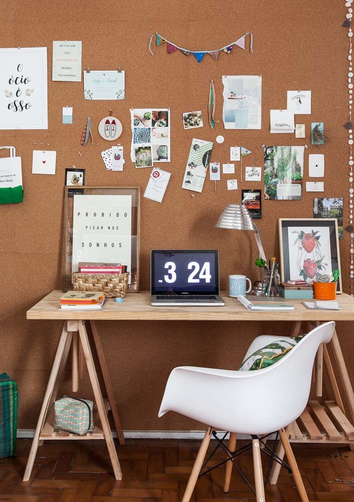 Imagem 60 – O tom de marrom natural na cortiça traz também modernidade para o home office.