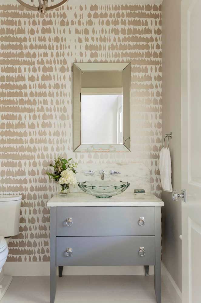 Imagem 31 – Papel de parede neutro para o lavabo; opção de revestimento elegante que não tem como errar.