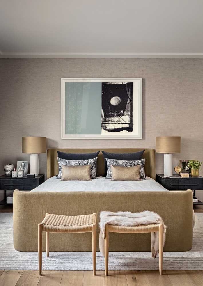 Imagem 10 – Papel de parede neutro e delicado para um quarto de casal clássico