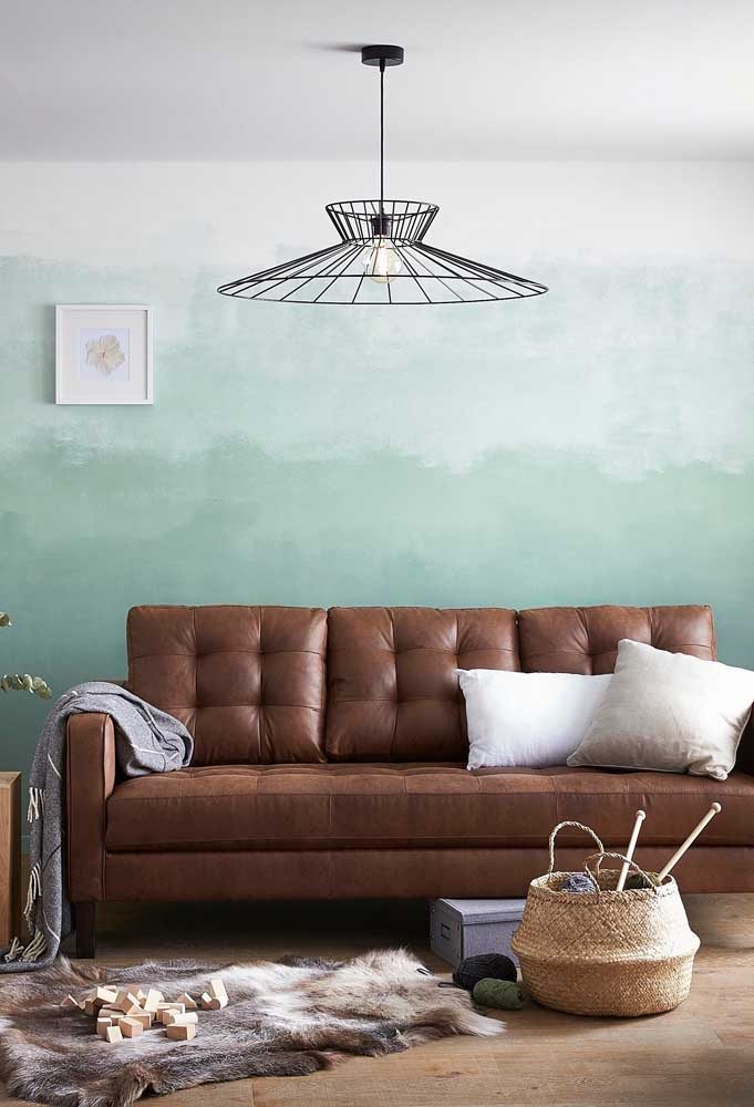 Imagem 14 – Já para a sala, a dica é uma parede ombré em tons terrosos que são convidativos e aconchegantes.