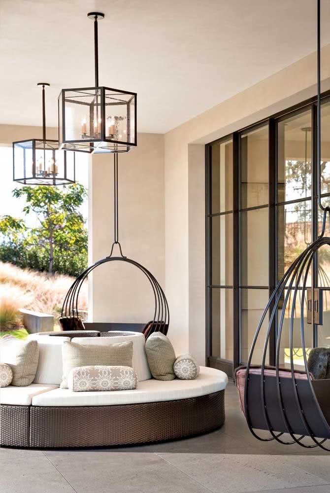 Imagem 32 – Pendente aramado preto para fazer jus ao estilo moderno da área gourmet.