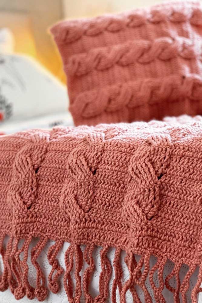 Imagem 23 – Que tal uma peseira de crochê com almofada com detalhe de trança?