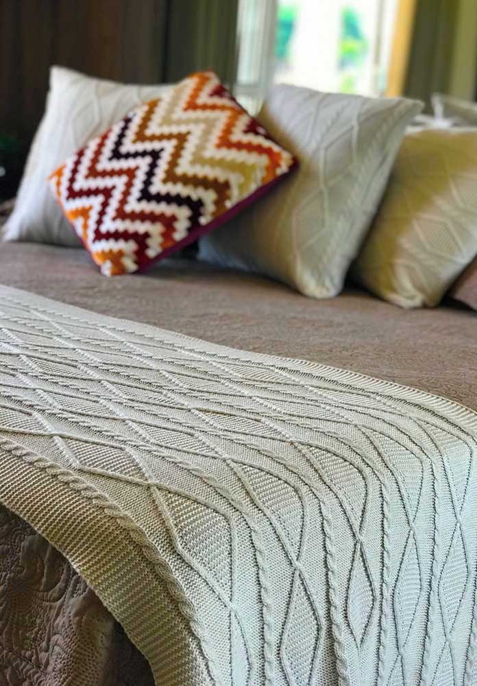 Imagem 28 – E se você ir um pouco além e fazer a peseira de maxxi crochê com almofadas de nó?