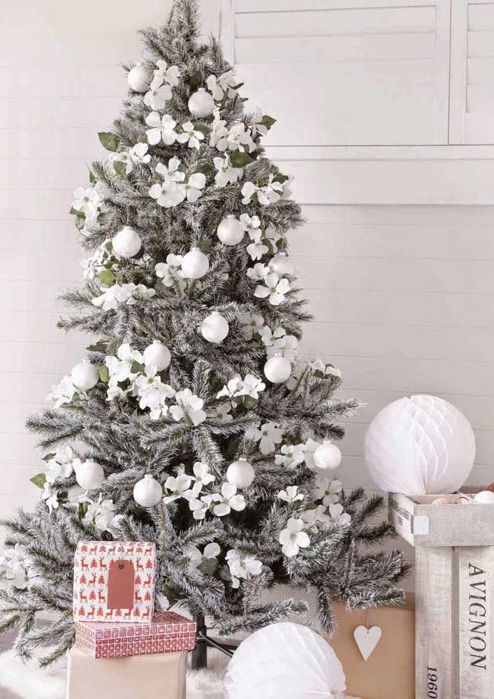 Imagem 61 – Decoração branca de Natal com pinheiro.