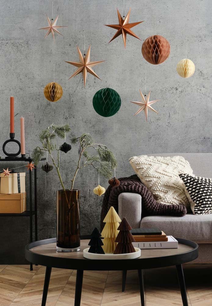 - Alguns enfeites são tradicionais e indispensáveis como as estrelas, anjos, sinos, pinhas e papais noéis, mas você pode fazer uma releitura desses símbolos de modo que eles se encaixem na sua proposta de decoração;