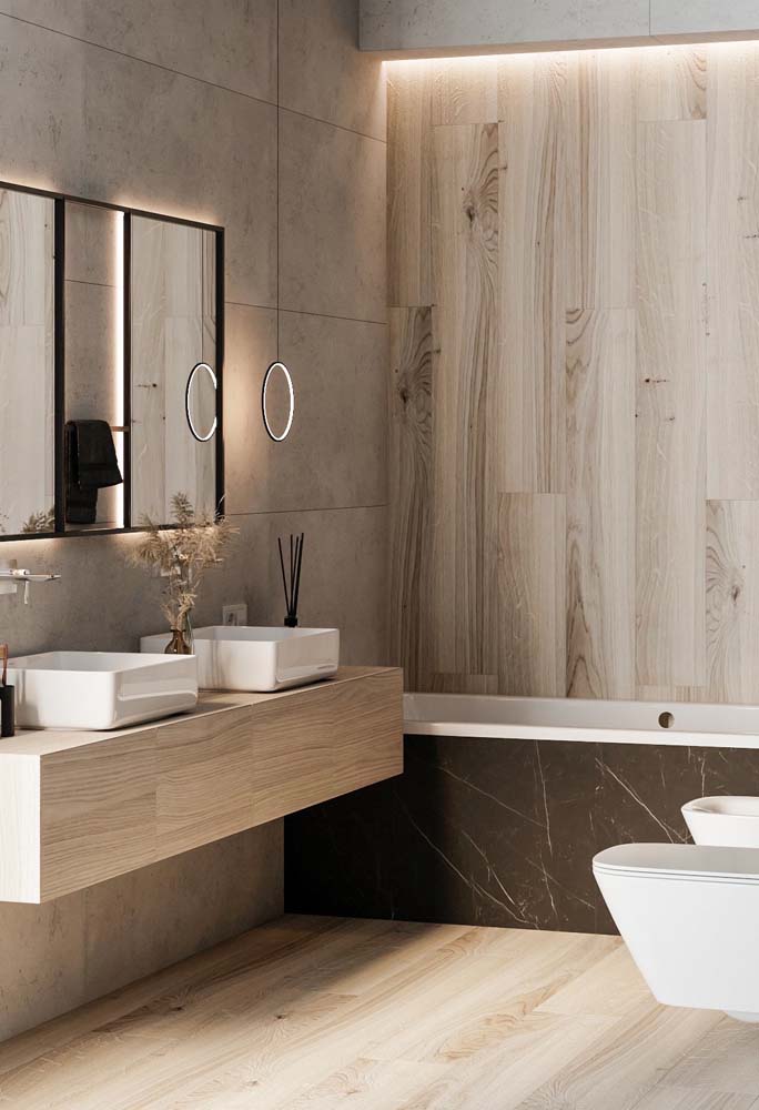 Imagem 11 – Mix de dois pisos no banheiro moderno.