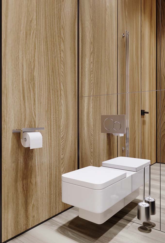 Imagem 10 – No banheiro optou-se por utilizar apenas o porcelanato de madeira