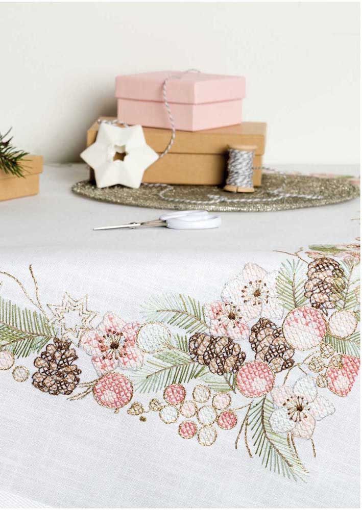 Imagem 24 – Flores delicadas bordadas no caminho de mesa.