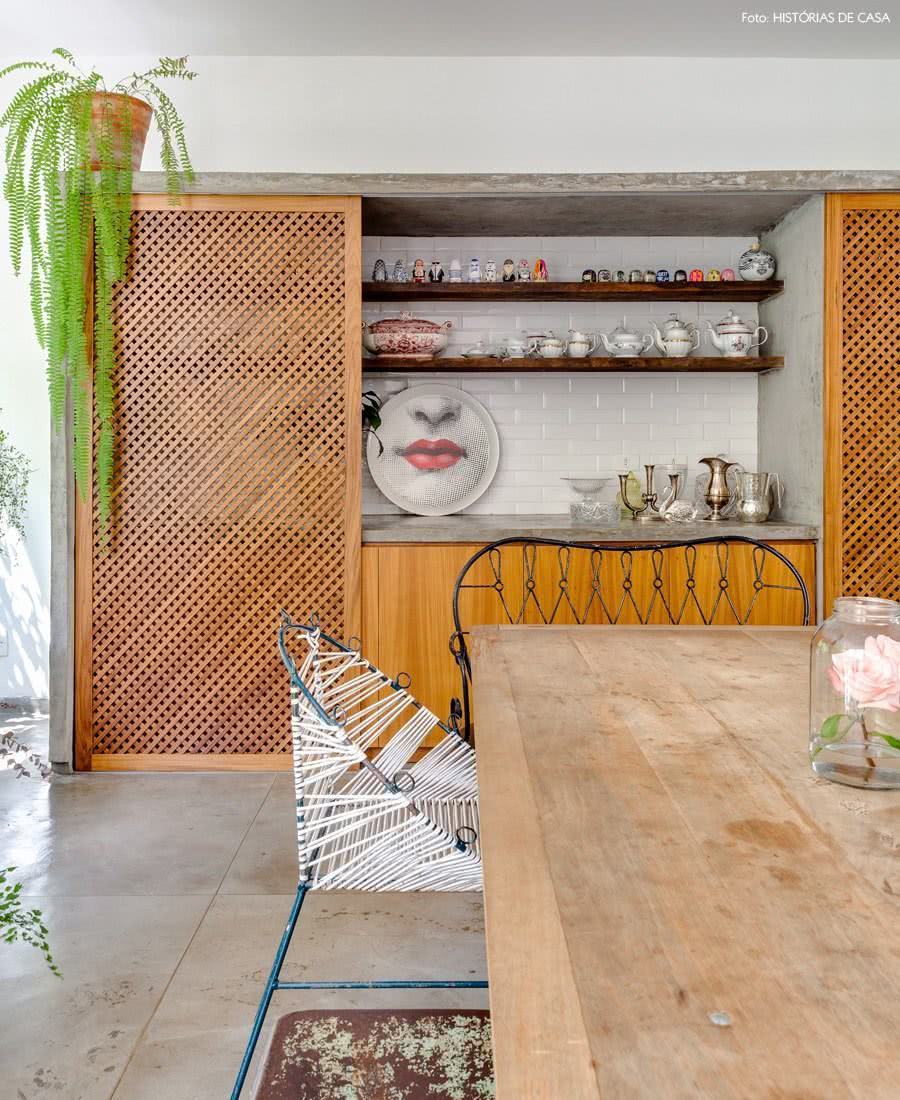 O legal dessa ideia é o contraste da madeira em um ambiente claro, que também realça e aquece o local.
