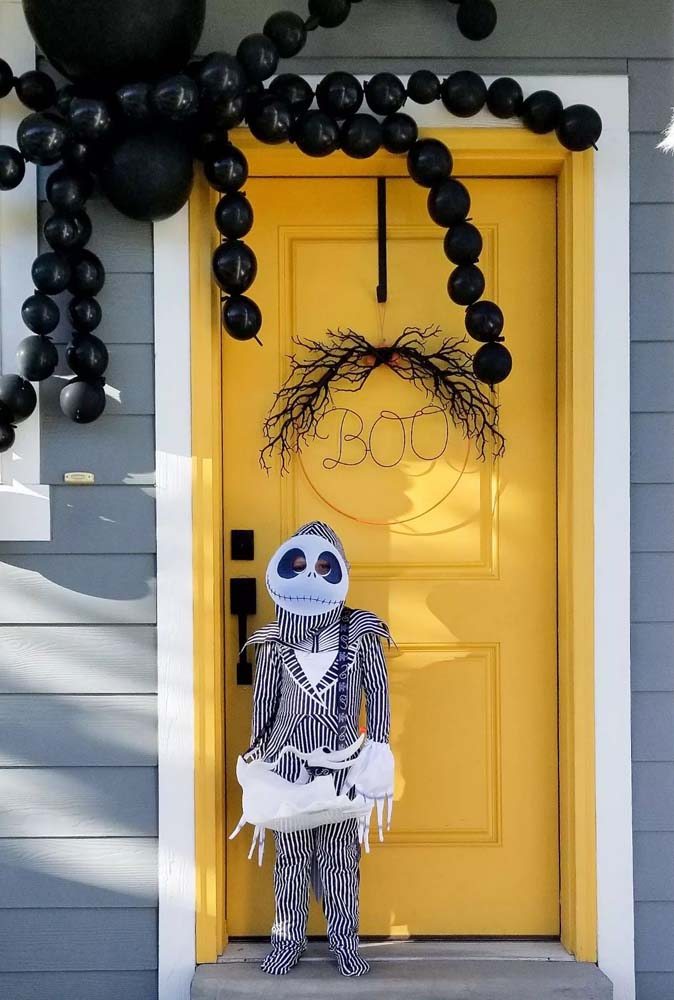 Imagem 18 – Este arranjo de balões demonstra que, com um pouco de criatividade e materiais básicos, qualquer porta pode ganhar vida no Halloween.