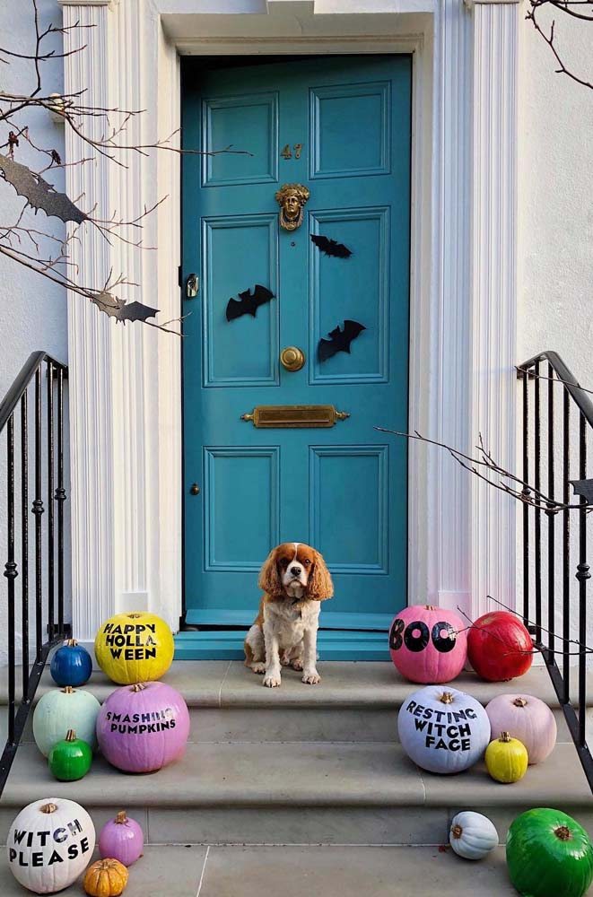 Imagem 3 – Um corredor de abóboras coloridas e personalizadas para destacar ainda mais a sua porta.