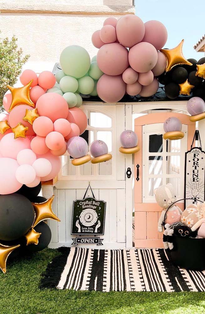 Imagem 9 – Para não assustar os pequenos, faça um arranjo de bexigas e utilize enfeites de Halloween mais esotéricos.
