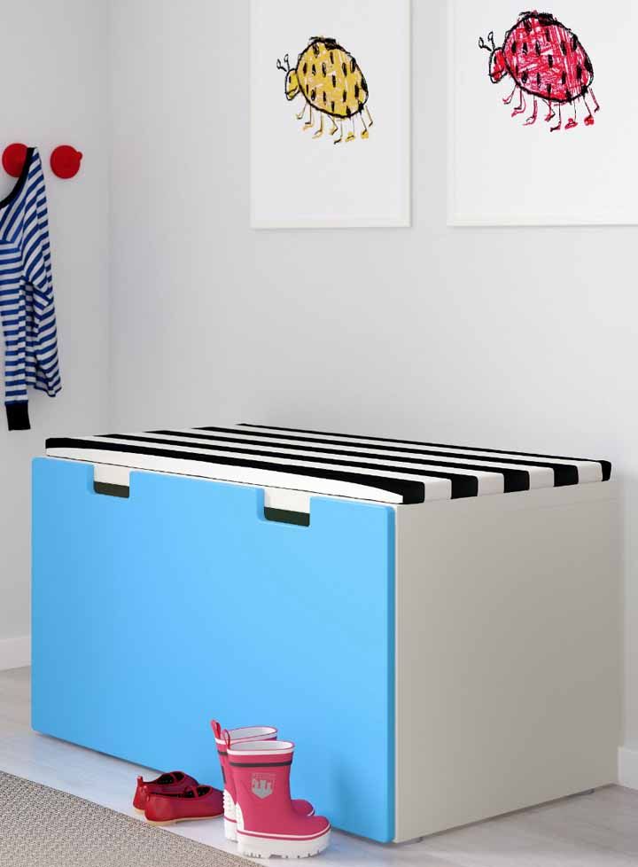 Imagem 25 – Esse puff baú para o quarto infantil ganhou um encosto para ficar mais confortável