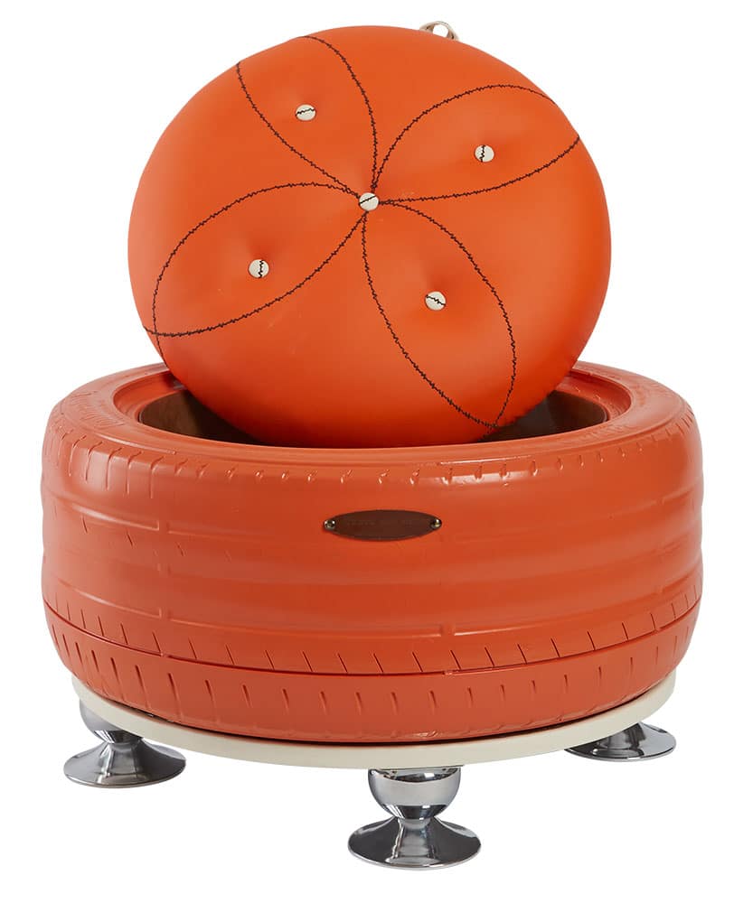 Imagem 39 – Puff de pneu com padronagem de bola de basquete.