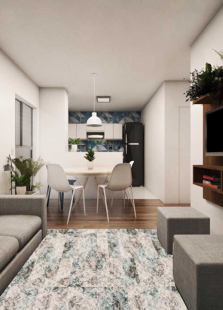 Imagem 50 – Um puff grande e quadrado para dividir a sala de estar da sala de jantar.
