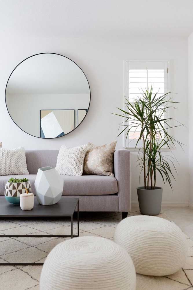 Imagem 3 – Dupla de puffs redondos, em tamanhos diferentes, para deixar a sala mais aconchegante.