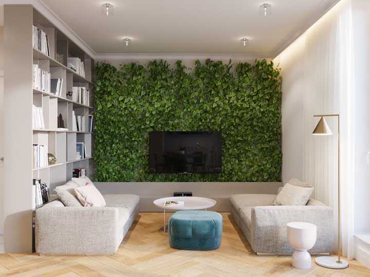 Imagem 65 – Sala estreita? Não tem problema! Use um puff retangular que acompanha o formato do ambiente.