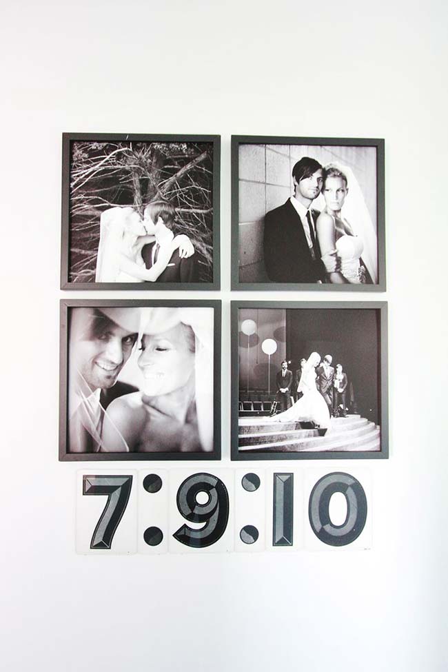 Imagem 2 – Uma data mais que especial marcada, literalmente, na decoração da casa por quadros de fotos em preto e branco do mesmo tamanho.