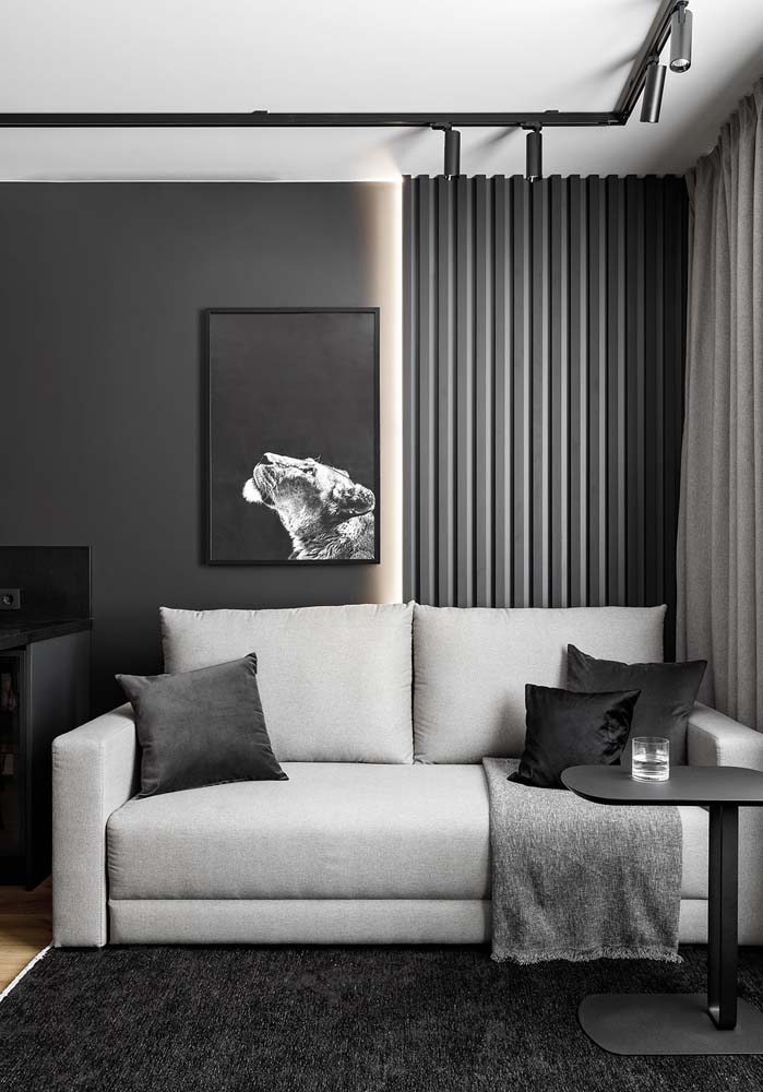 Imagem 20 – Sala com tons escuros recebe quadro com fotografia também preto e branca.