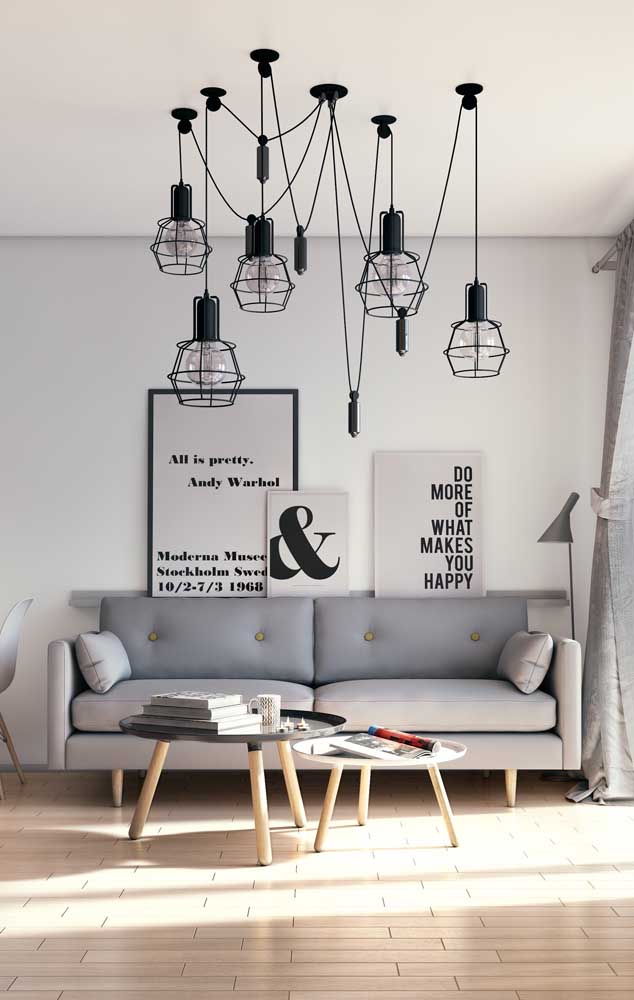 Imagem 13 – A sala moderninha traz um mix de quadros Tumblr com frases inspiradas na Pop Art.