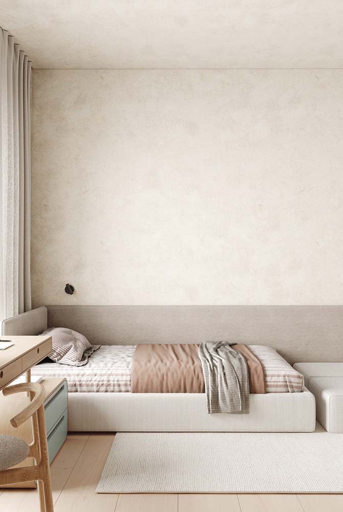 Podemos dizer, inclusive, que o quarto clean flerta com estilos como o minimalista, japandi e escandinavo, onde a estética do “menos é mais” tem grande valor.