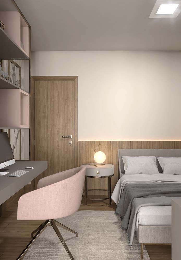 Imagem 83 – O tom rosa quartzo é moderno e elegante para qualquer quarto.