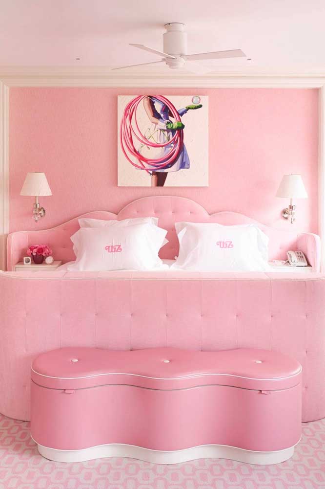 Além das cores, pense também nas texturas e estampas. O quarto da Barbie combina com pelúcia, veludo, cetim, poás, bocas e corações.