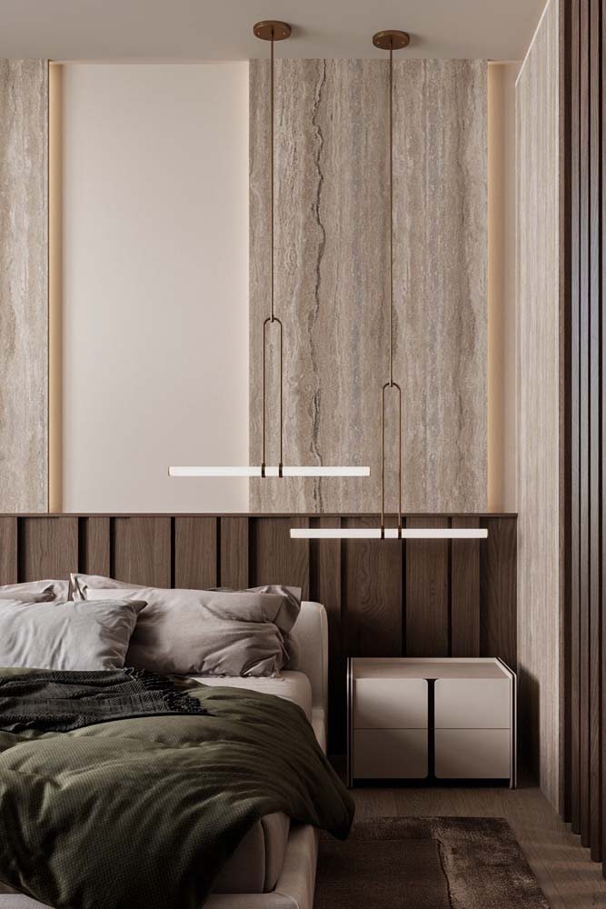 Imagem 59 – A luminária pendente perfeita para deixar o quarto de casal ainda mais moderno.