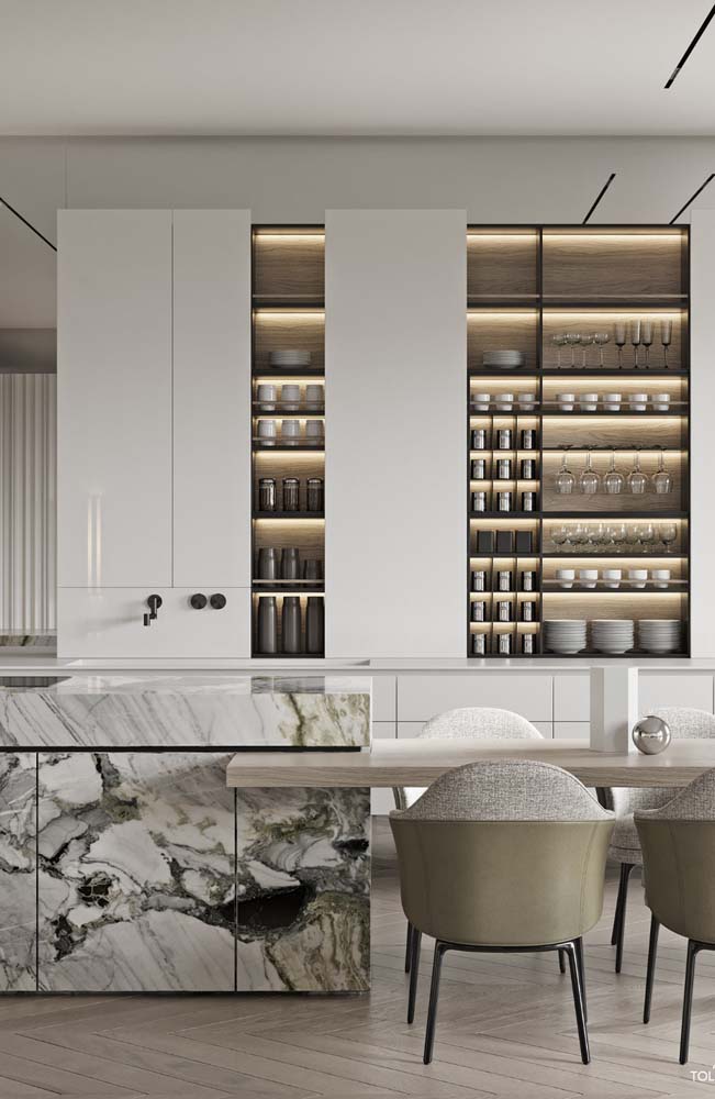 Imagem 21 – Impermeável, o quartzito branco pode ser usado sem medo na bancada da cozinha.