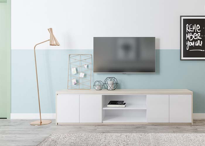 Antes de mais nada, você precisa saber qual o espaço disponível para o rack, já descontando o local onde ficará os outros móveis, como sofá e mesa de centro. Não se esqueça de que é necessário deixar um espaço para circulação. Tire todas as medidas e faça até um desenho no papel para visualizar melhor o espaço pronto.
