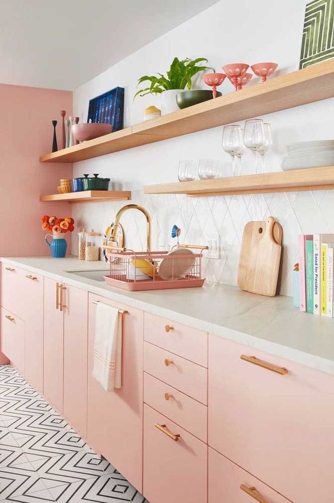 Imagem 11 – E o que acha de uma cozinha rosa millennial?