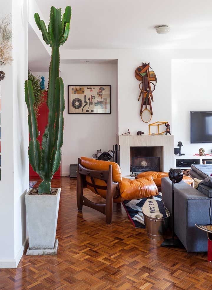 Imagem 11 – A sala de estilo boho conta com um piso de madeira impecável e lustroso.