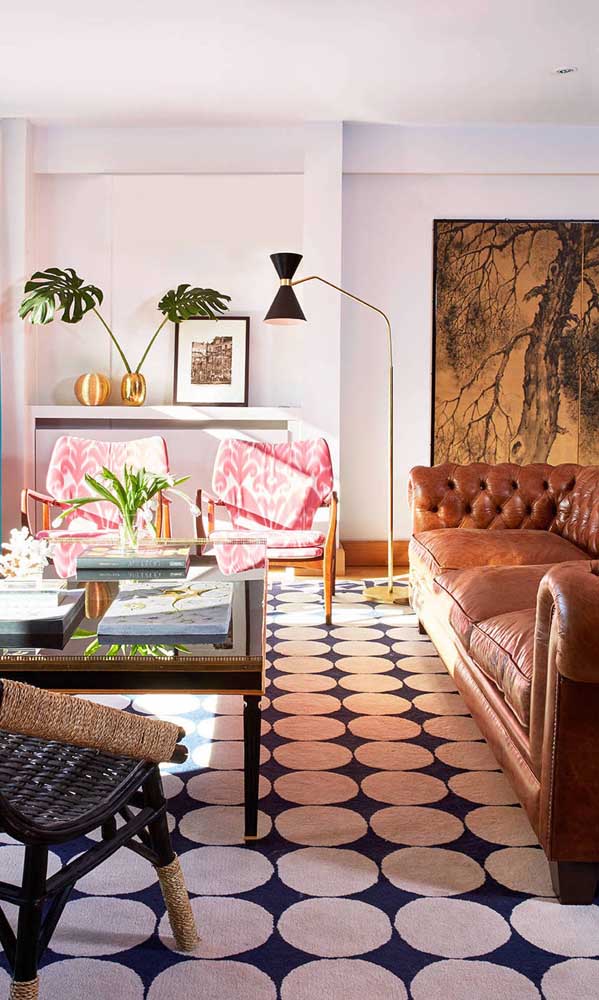 Imagem 35 – E até em um mix de estilos o sofá Chesterfield se encaixa com perfeição.