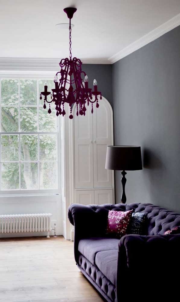 Imagem 21 – O tom mais escuro de roxo traz sensualidade e glamour para sala de estar.