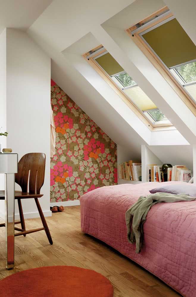 Imagem 4 – Um quarto completo no sótão. Aqui, as janelas se inclinam junto com a parede.