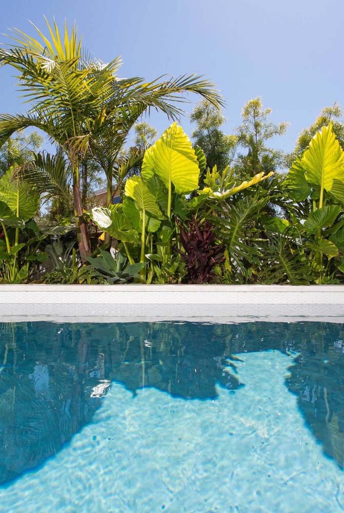 Imagem 37 – Um dia de descanso na piscina com vista para um lindo jardim de taiobas.