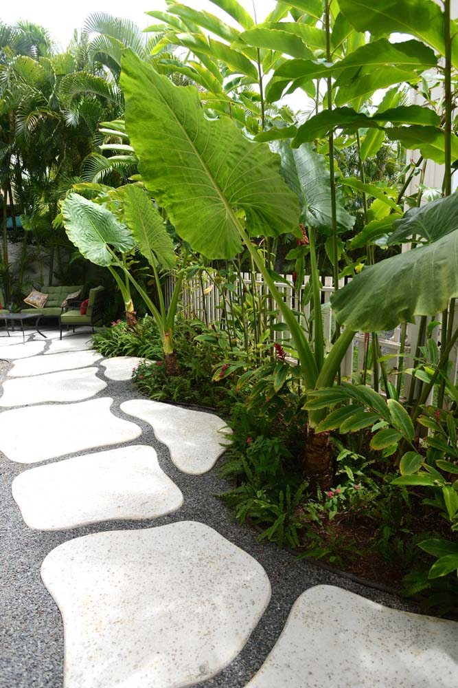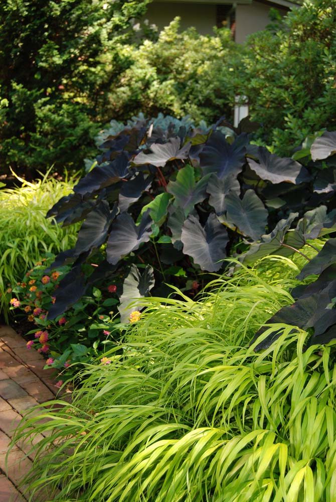 Imagem 42 – A taioba roxa se destaca nesse projeto de jardim tropical.