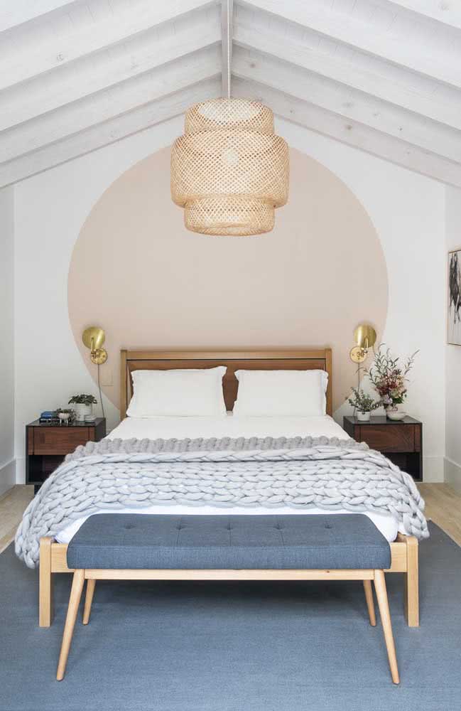 Imagem 7 – Tapete azul persa para o quarto de casal em tons neutros.