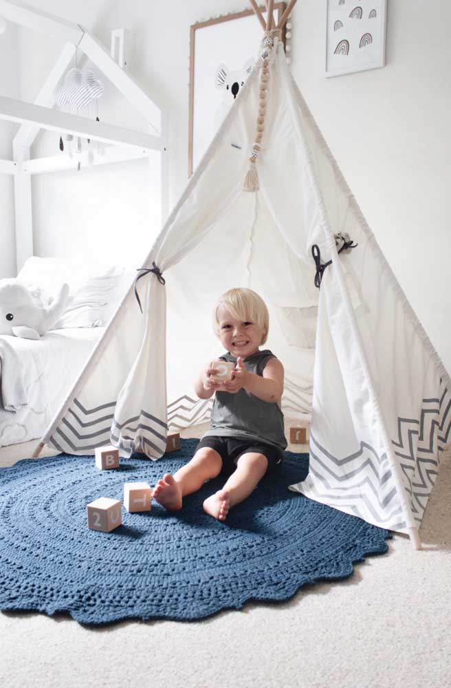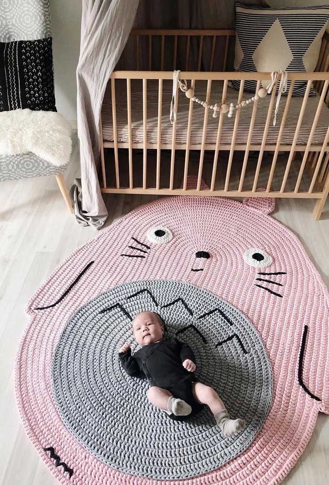 Imagem 37 – Prefere algo mais minimalista? Então essa ideia de tapete de crochê infantil é perfeita.