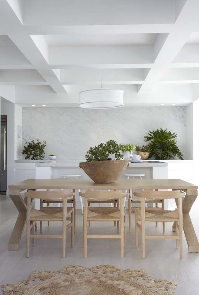 Tem lugar para os clássicos também ao lado do tapete de palha. Nesse caso, a dica é combinar a peça com cores neutras e claras, como branco e tons de off White e materiais nobres como a madeira.